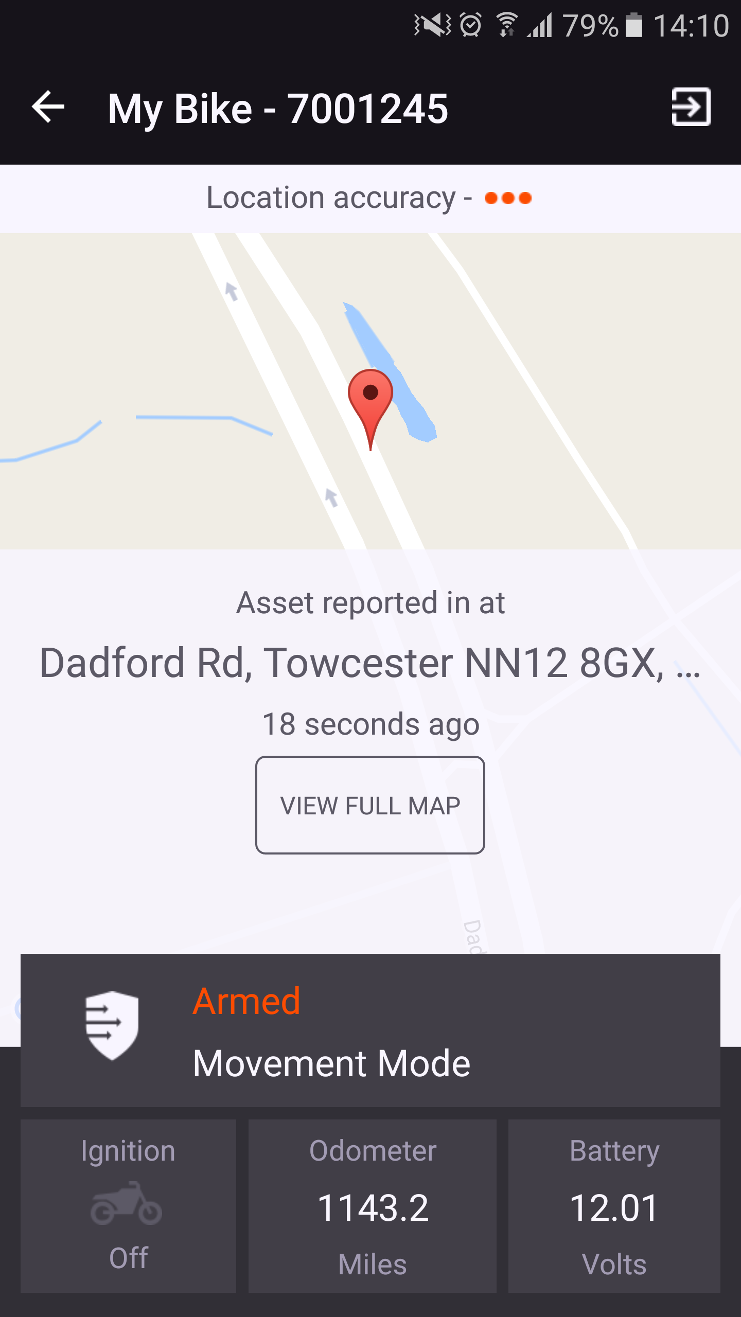 As well as the easily accessible Service & Transportation Mode, the BikeTrac app also provides live information such as vehicle battery voltage, ignition status, odometer reading and a short cut button to contact police in the event of a theft too.